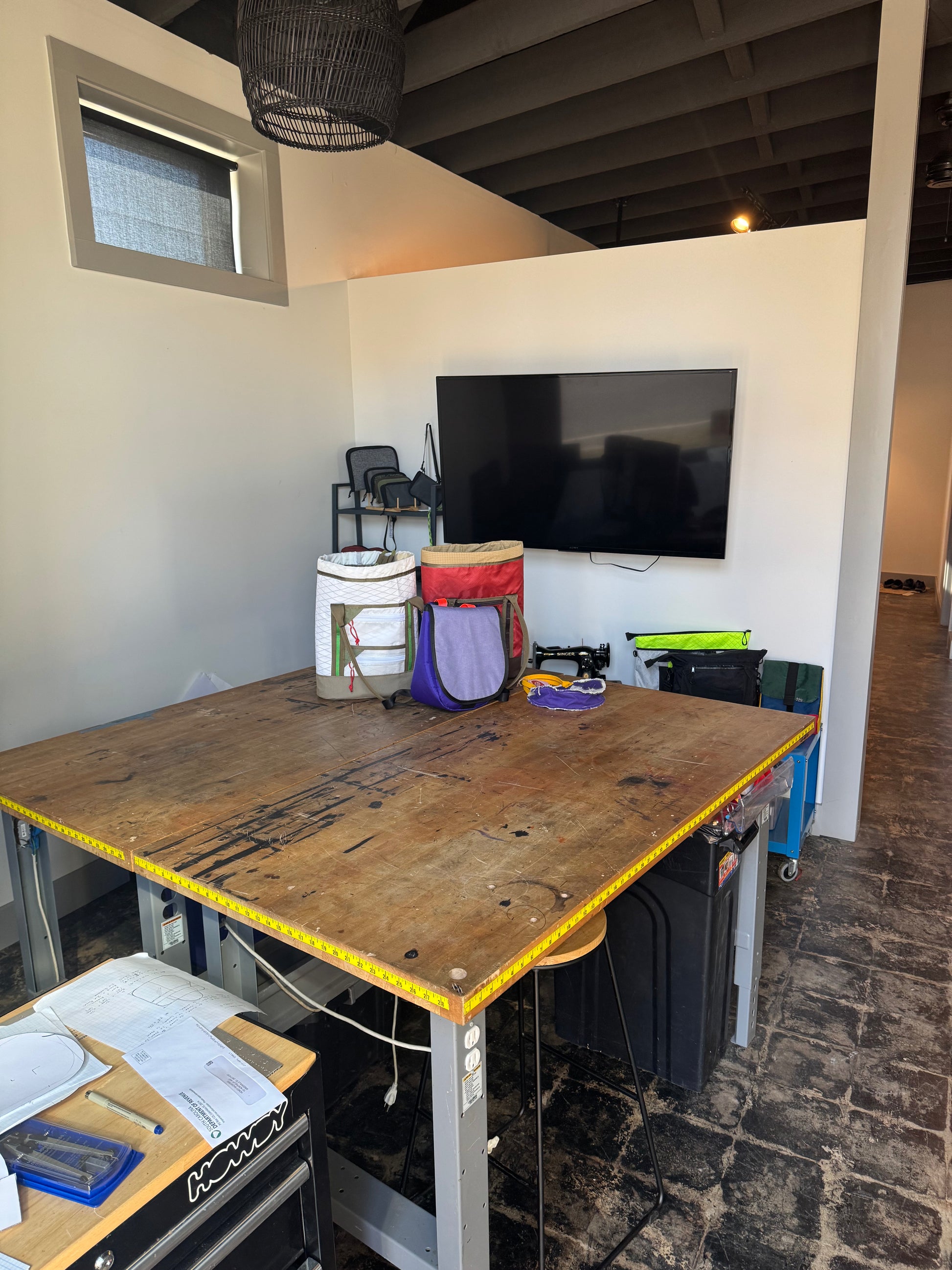 Access a fully equipped creative workspace at Howdy HQ. Our open studio features professional-grade industrial sewing equipment, digital creative tools, and an expansive XL cutting table—everything you need for polished, professional results. Collaborate with fellow creatives, buy premium materials on-site, and bring your vision to life with industry-standard resources at your fingertips.